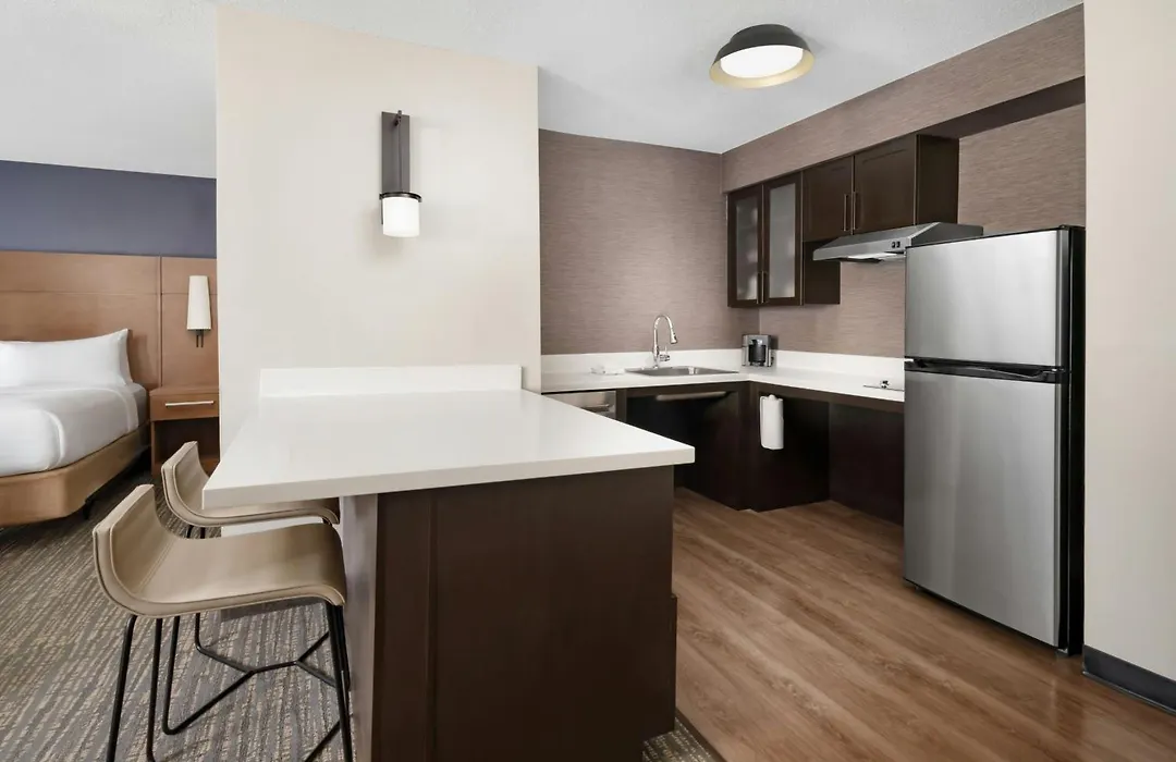 Gastenkamers bieden een zitruimte en een eetgedeelte, samen met een bureau voor het comfort van de gasten. Een koelkast, een kookplaat en keukengerei zijn inbegrepen in de keuken in dit hotel in Bloomingdale.